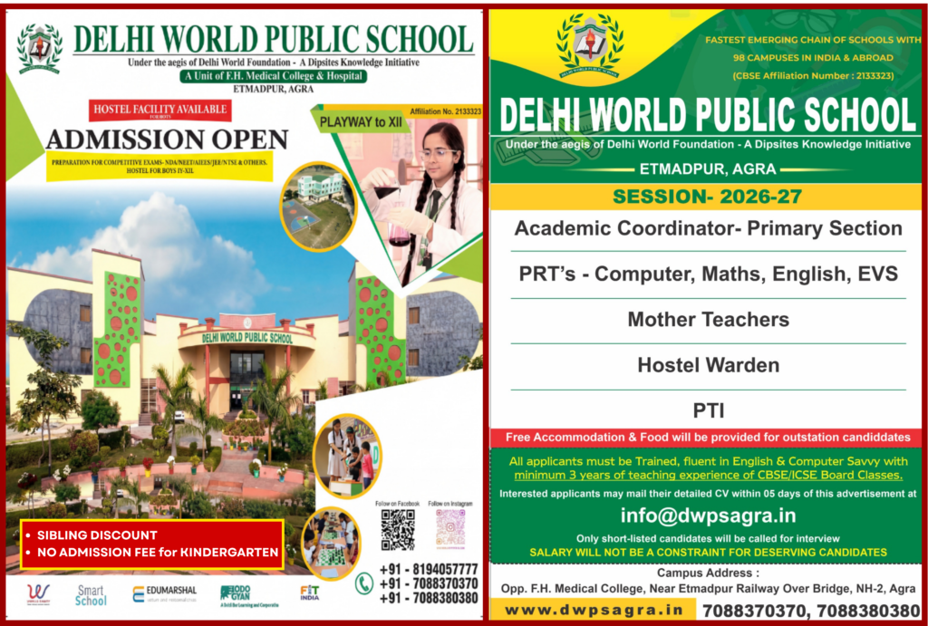 Delhi World Public School Etmadpur, Agra is a proud member school of the Delhi World Foundation.
